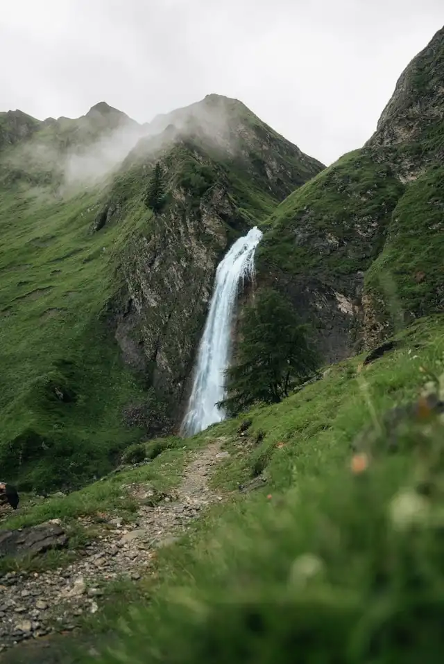 Following the winding path through the mountains, each step brings you closer to the mesmerizing cascade of the waterfall. ποΈπΏ The sound of rushing water guides your journey, leading you to a hidden oasis of tranquility and beauty. Nature's symphony awaits at the end of this enchanting trail.